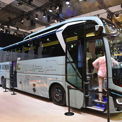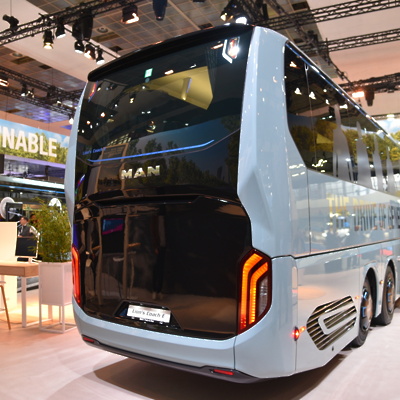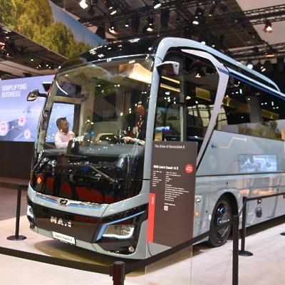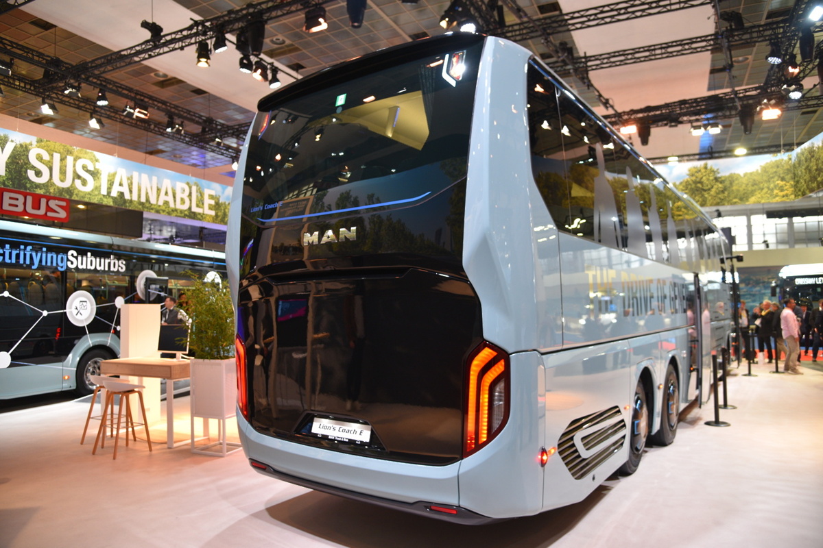 Pri MAN-u so poskrbeli za eno glavnih novosti letošnjega sejma – predstavitev serijske izvedbe električnega turističnega avtobusa Lion's Coach 14 E. Ta je, poleg električnega pogona, ki ga že poznamo iz MAN-ovih električnih tovornjakov, prejel tudi posodobljeno obliko – predvsem z bolj aerodinamično oblikovanim zadnjim delom. Ponujal naj bi doseg do 650 kilometrov, s čimer lahko številne prevoze opravi brez potrebe po vmesnem polnjenju baterij.