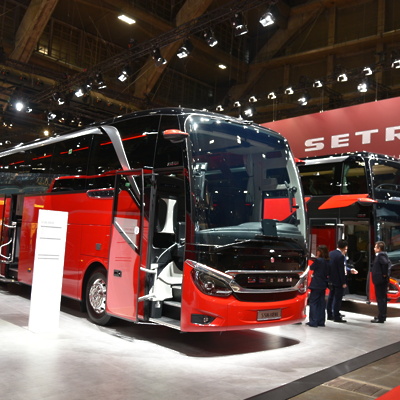 Premium znamka Setra je prikazala svojo celotno ponudbo, vključno z najnovejšim linijskim modelom z nizkopodnim vstopom MultiClass LE ter novim avtobusom leta 2026 – serijo TopClass.