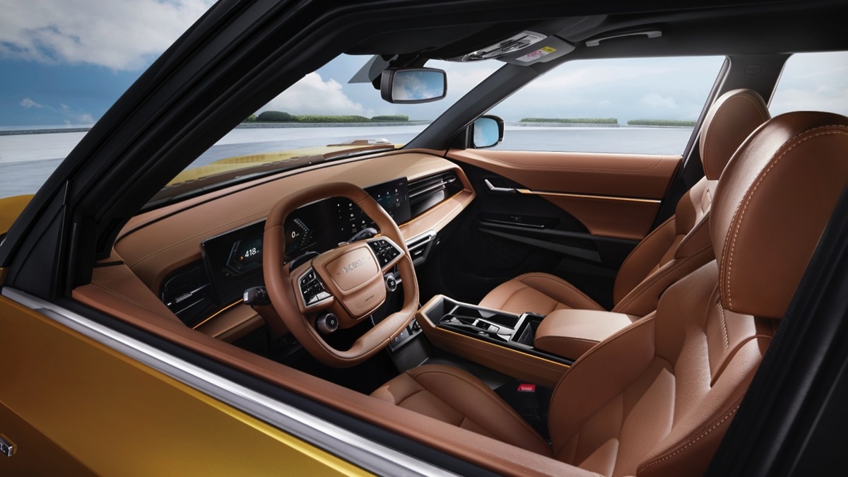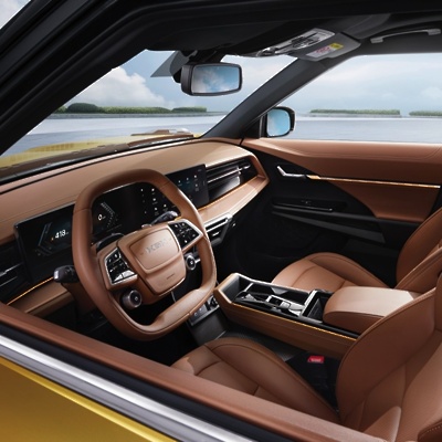 Notranjost je zasnovana po konceptu »vitko in široko «, ki zagotavlja široko in stabilno vidno polje ter panoramski, široko zasnovan uporabniški vmesnik. Volan z D-obliko in lebdeča sredinska konzola poudarjata visokotehnološki videz in udobje ter postavljata nov standard, ki združuje robustnost in prefinjenost.