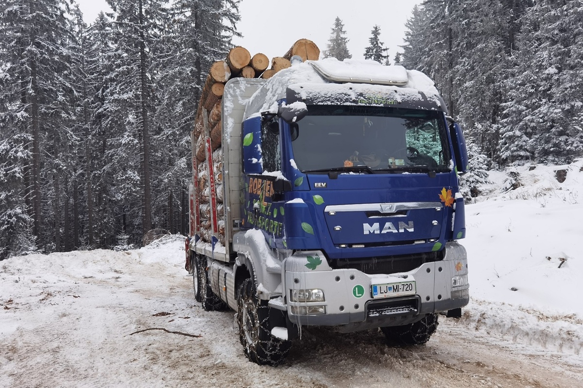 »Leta 2020 so mi pri Roblek lesu z Jezerskega ponudili delo gozdarskega voznika. Zame je bil to tudi nov izziv, saj tega prej še nisem počel. Šel sem bolj kot ne poskusit, kakšno delo je to, nato pa ostal štiri in pol leta. Po tej izkušnji nisem več čisto prepričan, da je vožnja avtobusa kraljevska kategorija. Po moje je vožnja gozdarskega tovornjaka še stopnjo višje. Ceste so ozke, oprijem slab, vozila pa (vsaj) polno naložena. Obračati je treba na tako majhnem prostoru, da še izkušeni vozniki ne verjamejo, da je to mogoče. V višjih legah je pozimi veliko snega, tako da sem verige natikal in snemal tudi po petkrat na dan, vmes pa po potrebi skočil po traktor in si zoral pot. Kadar je podlaga zmrznjena si dokaj na varni strani, ko pa se led začne taliti, se cesta zmehča, postane blatna. Enako je ob daljših deževjih. Se pa v gozdu veliko naučiš in učiti se moraš hitro, če hočeš preživeti. Seveda nisem vozil samo po gozdu, ampak sem debla vozil tudi v Italijo in Avstrijo in spet bil z doma več, jot želim,« to poglavje svojega življenja opiše Marko.