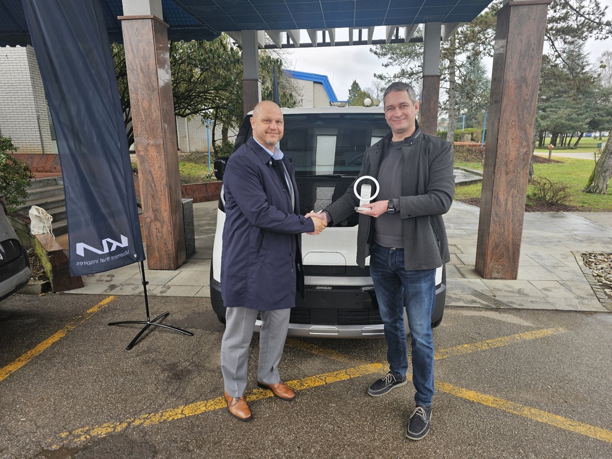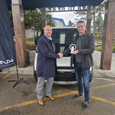 Kia je s svojim novim dostavnikom PV5 prvič prejela najprestižnejšo nagrado v industriji lahkih gospodarskih vozil. Šestindvajset članov žirije International Van of the Year (IVOTY) nas je soglasno izbralo novi model PV5 za nosilca naziva za leto 2026. V sklopu predstavitve smo slovenskemu zastopniku, podjetju KMAG d.o.o., predali repliko nagrade, ki jo je, iz rok Boštjana Paušerja, slovenskega člana žirije IVOTY, prevzel Tomaž Mikulan, vodja prodaje Kia Adria.