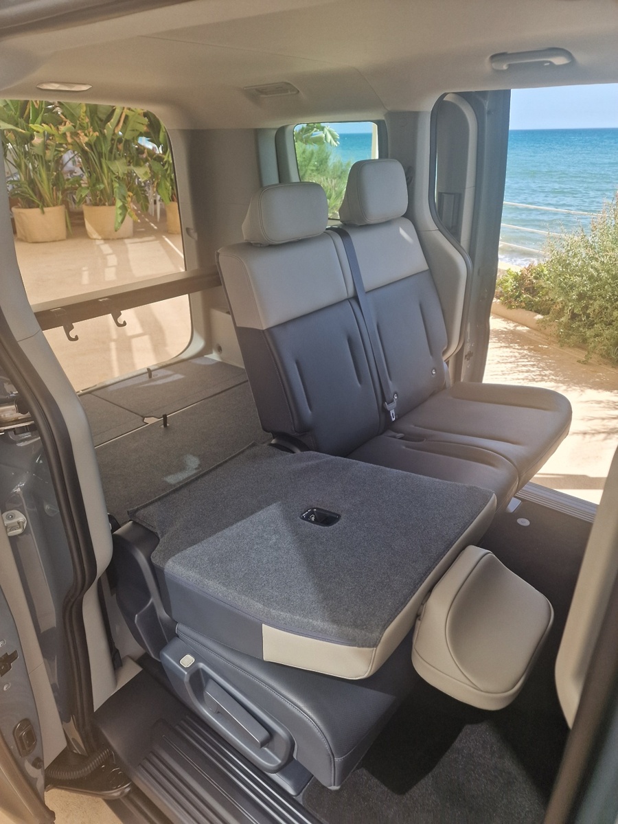 Notranjost potniškega vozila PV5 temelji na konfiguraciji sedežev v treh vrstah, ki ponuja številne možnosti uporabe in prilagajanje posameznim potrebam. V njihovi postavitvi 2-3-0 sta na primer prva in druga vrsta uporabljeni za sedeže, tretja vrsta pa nudi prostoren prtljažni prostor, ki ga dopolnjujejo odlagalna mesta v podu in ob straneh za optimalno izrabo prostora.