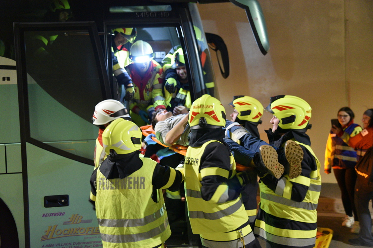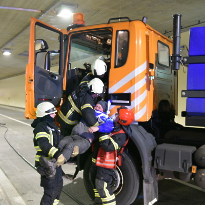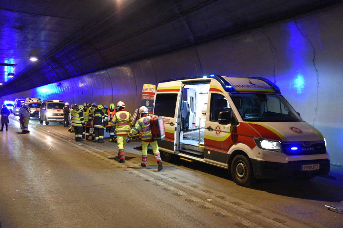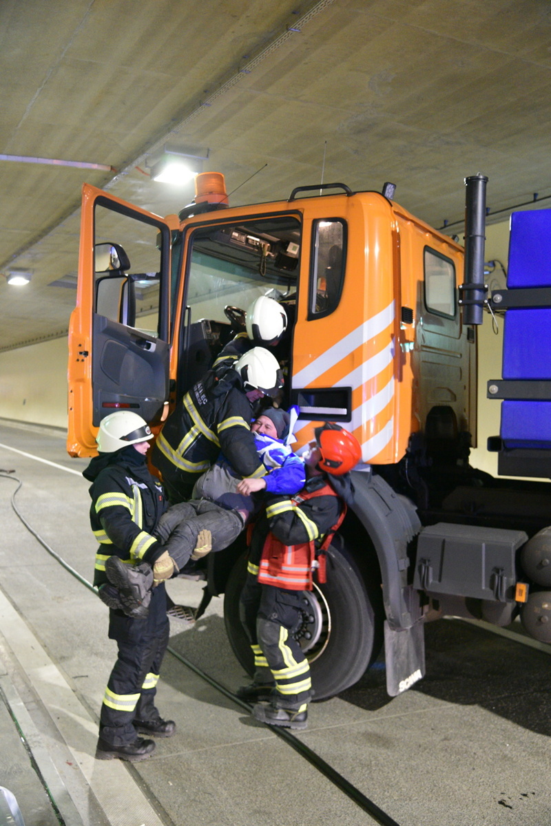 Še pred odprtjem predora se je v novi predorski cevi odvila vaja intervencijskih služb, ki jo je organiziral avstrijski upravljavec Asfinag v sodelovanju z DARS-om, in smo si jo lahko ogledali v živo. Šlo je za simulacijo prometne nesreče z več udeleženimi osebnimi vozili, enim tovornjakom ter enim avtobusom, v katerem so potniki. Simulacija je vključevala tudi predpostavko, da je eno v nesreči udeleženo vozilo zagorelo.