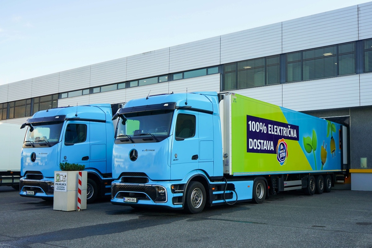 Po naših cestah že vozita prva električna tovornjaka Mercedes-Benz eActros 600, ki dostavljata blago v 93 trgovin HOFER po Sloveniji. Vozili sta v lasti podjetja Kobal Transporti, ki izvaja prevoze za HOFER.