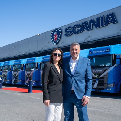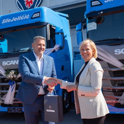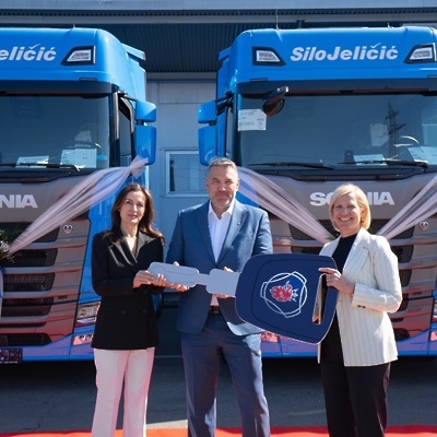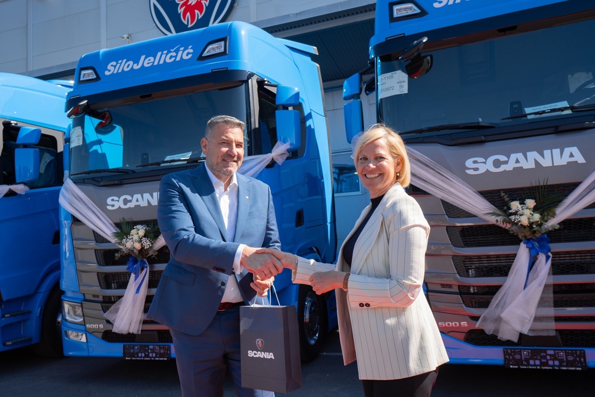 V podjetju Silo Jeličić so od leta 2001 specializirani za cestni prevoz suhega razsutega prahu in granuliranega materiala z uporabo silos cistern. Ob prevzemu novih vozil sta Nenad Jeličić in Dragana Jeličić slavnostno prevzela simbolični ključ, ki jima ga je predala generalna direktorica Scania East Adriatic Regije Urška Fon Satler.