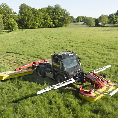 Razstavljena vozila odlikuje sinergijski pogon EasyDrive, ki omogoča hitro menjavo med mehanskim menjalnikom in hidrostatičnim pogonom za vožnjo do hitrosti 50 km/h. Nosilci naprav Unimog imajo vgrajeno hidravliko z zaznavanjem obremenitve, zato lahko oljni tlak in pretočno količino hidravlične črpalke samodejno prilagajajo trenutnim potrebam priključenih naprav glede moči. Poleg tega so vsi razstavljeni nosilci naprav Unimog opremljeni s komfortnim krmiljenjem in sistemom za hitro čiščenje hladilnika.